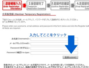 このサイトの左の会員登録ボタンをクリックします。